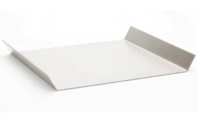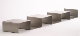 The Stainless Steel Series is the core collection. Each design in the series is rendered in high quality stainless steel with a signature radiant orbital finish that seems to extend beyond the edges of the form. The pieces are balanced in feel and durable in construction. They are sufficiently weighty as substantial sculptures yet light enough for everyday use.
